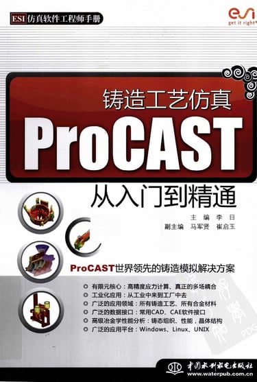 ProCAST for Casting Process Simulation: From Beginner to Mastery (Li Ri, China Water & Power Press) is a practical hands-on guide to ProCAST, the world-leading casting CAE software for finite element multi-physics simulation across all casting processes and alloys. Ideal for engineers, CAE professionals, and students.